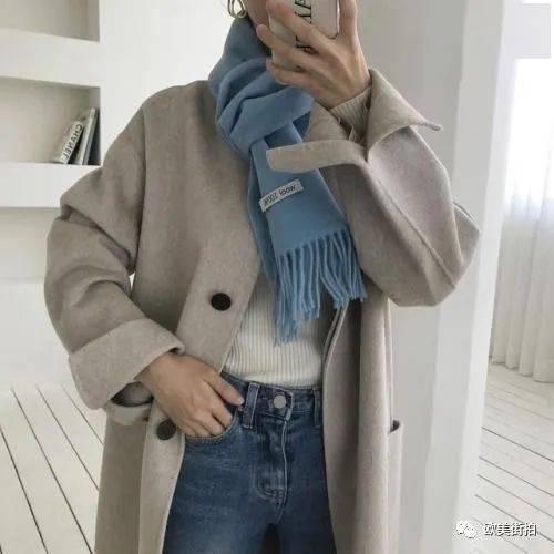 一、经典款:围巾绕脖法